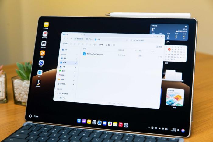 MatePad Edge 的核心体验就在于双模式切换,一边是平板系统,四指横滑过来,就是鸿蒙 PC 操作系统,两个模式无感切换,让用户可以根据使用场景自由选择。电脑模式是 MatePad Edge 的核心体验之一,具备传统 PC 的多任务管理方式、快捷操作逻辑与全面的键鼠适配能力。任务栏、窗口大小调整、文件系统与快捷键等均与日常 PC 操作保持一致,使用户无需额外学习成本即可投入使用。